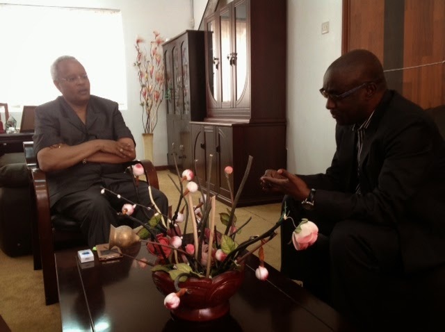 Waziri mkuu mstaafu Edward Lowassa (kushoto) akiwa Rais wa Simba Evance Aveva katika ofisi.